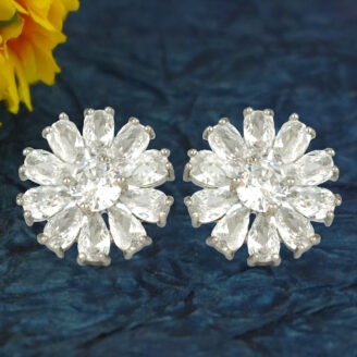 Rhodium-plated stud earrings featuring everyday sparkle, designed for wedding functions. Offers lightweight comfort and durable finish, making it ideal for day-to-night outfits.