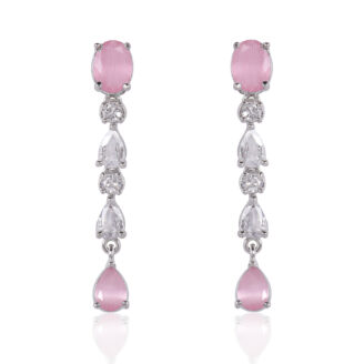 Designed with delicate pink stones, this rhodium plated AD necklace set exudes feminine grace, ideal for weddings and festive occasions.