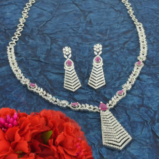 This premium bold ruby red rhodium plated necklace is crafted for premium range. A perfect pick for weddings, parties, and festive occasions, designed to elevate your look.