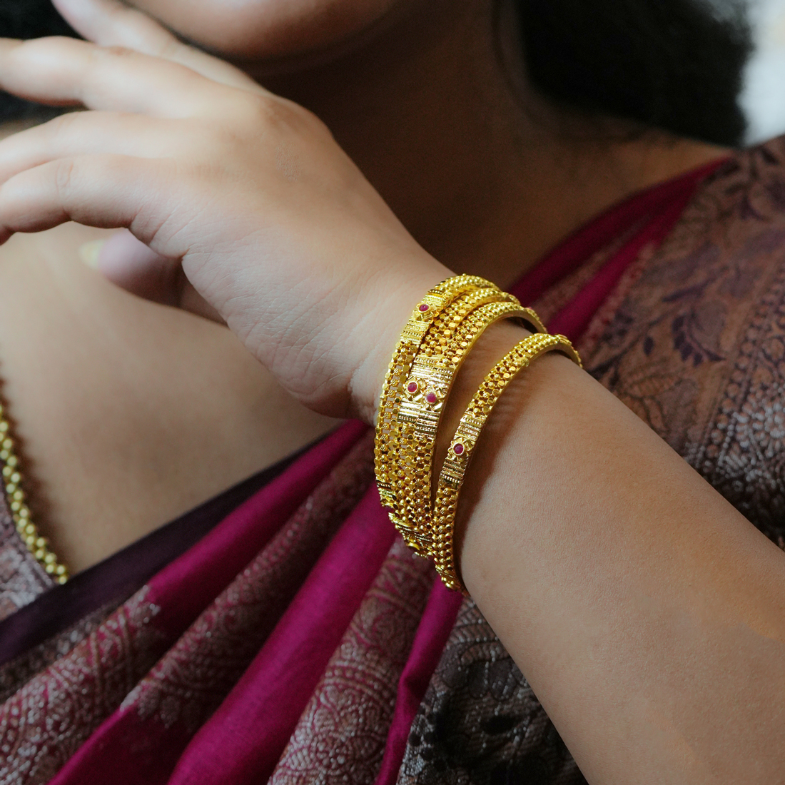 Antique Floral Gold Plated Bangles – Bridal Elegance