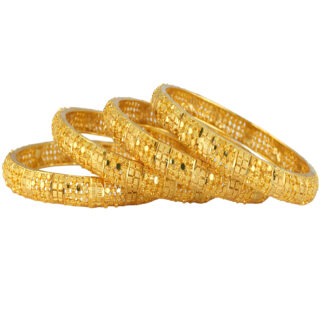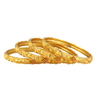 Featuring intricate floral motifs, these bangles offer a vintage gold look for festive and bridal wear. The micro gold plating adds warmth and richness to your ethnic wardrobe.