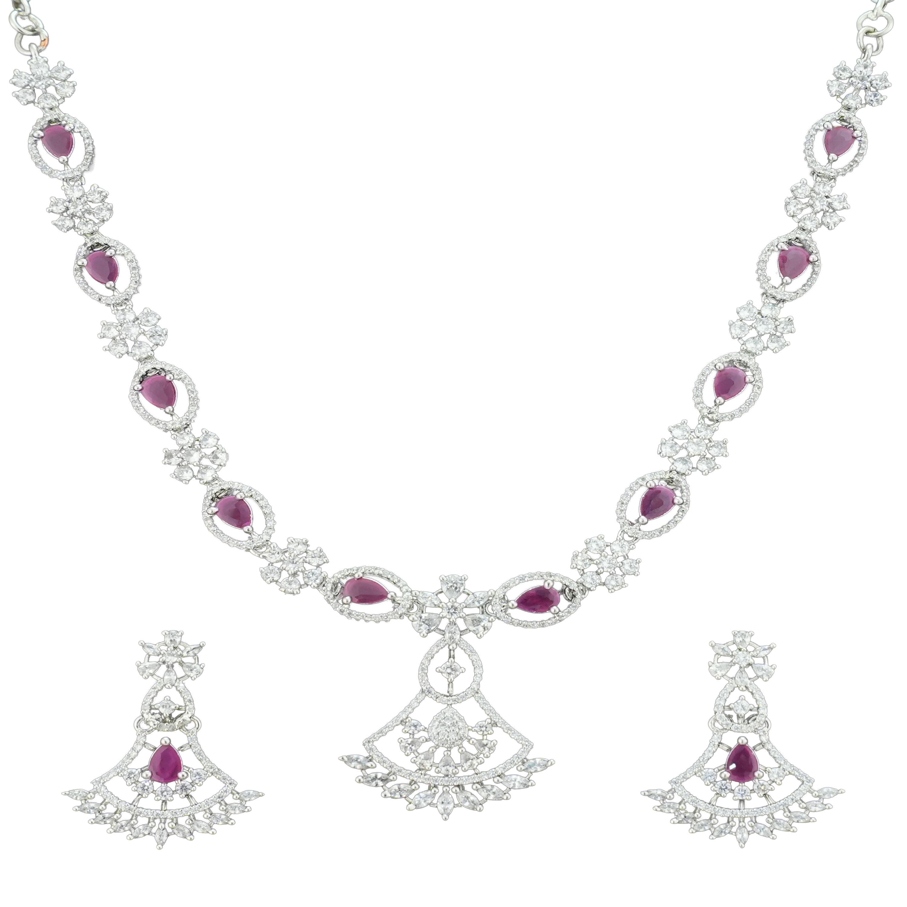 This charming bold ruby red rhodium plated necklace is crafted for modern charm. A perfect pick for weddings, parties, and festive occasions, designed to elevate your look.