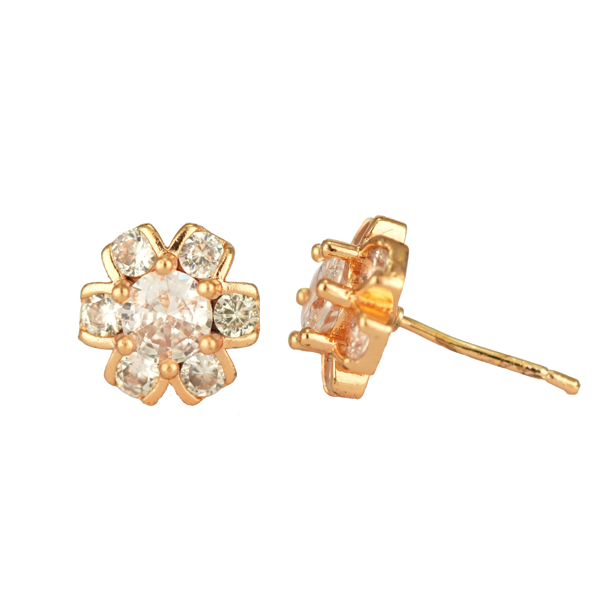 Rose gold-plated stud earrings featuring petite silhouettes, designed for casual outings. Offers easy to style and subtle statement, making it ideal for gifting.