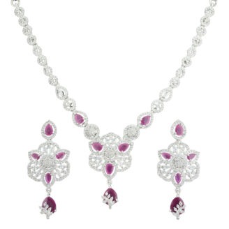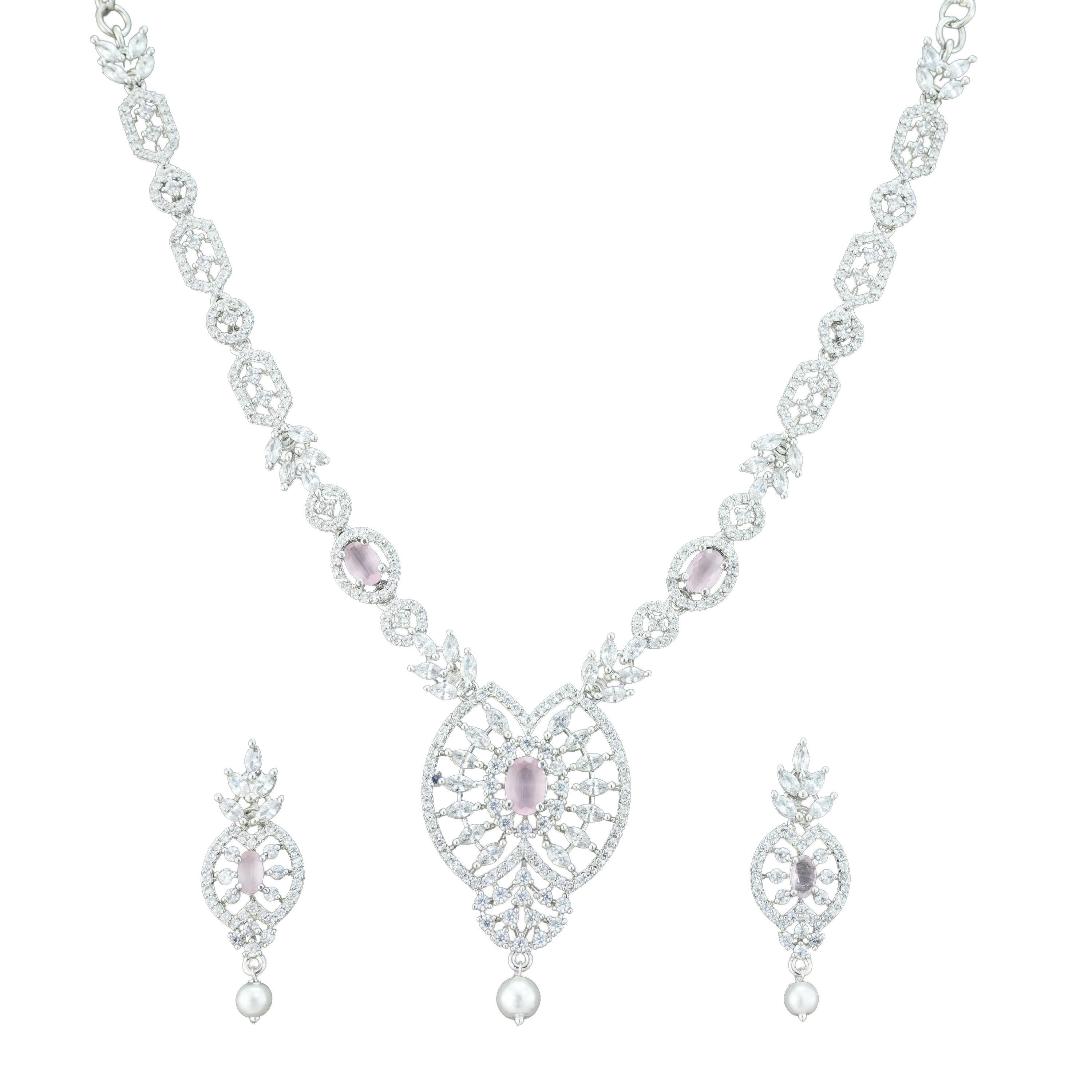 This classic fresh mint pink rhodium plated necklace is crafted for classic edit. A perfect pick for weddings, parties, and festive occasions, designed to elevate your look.