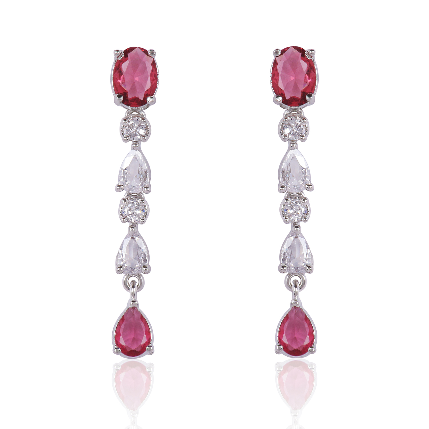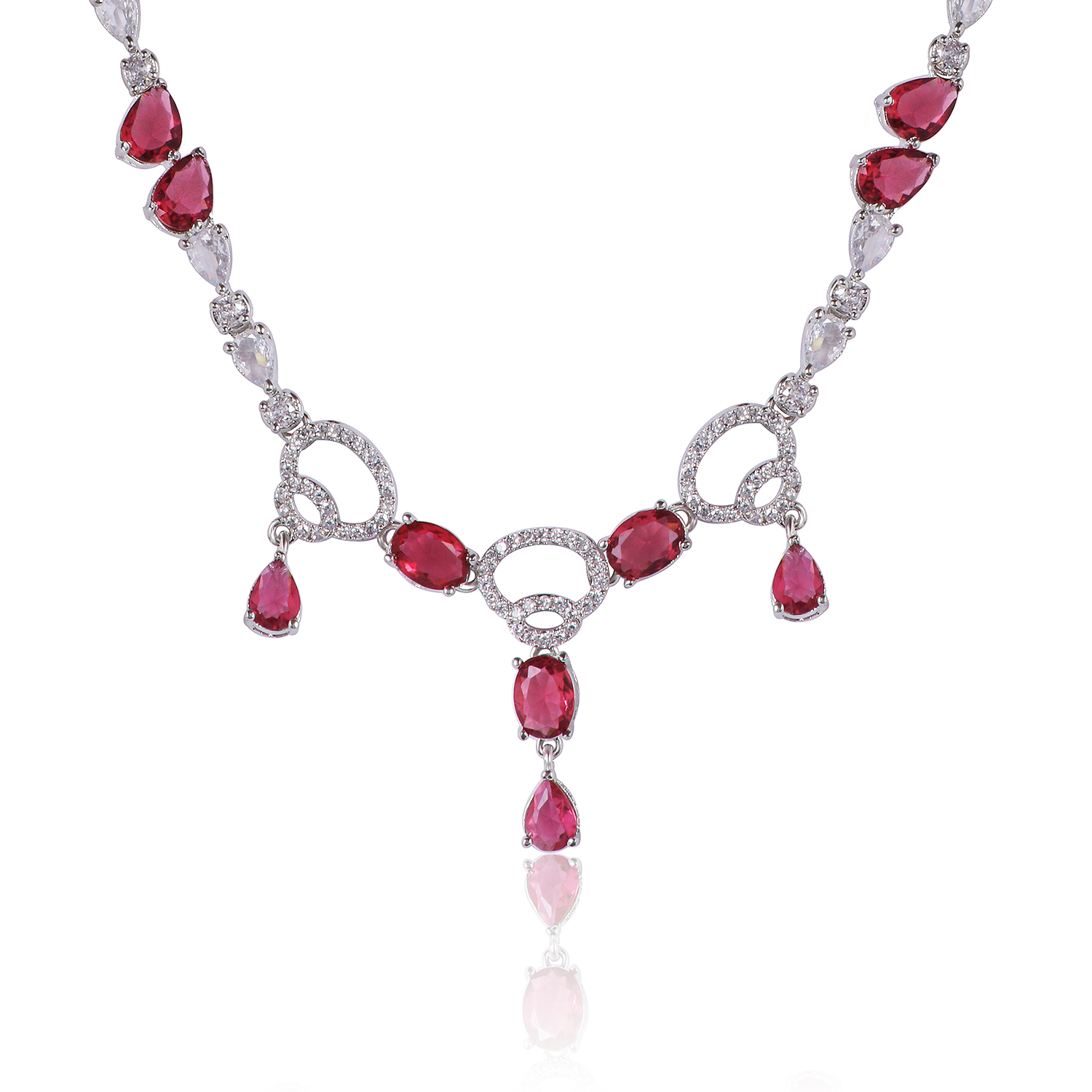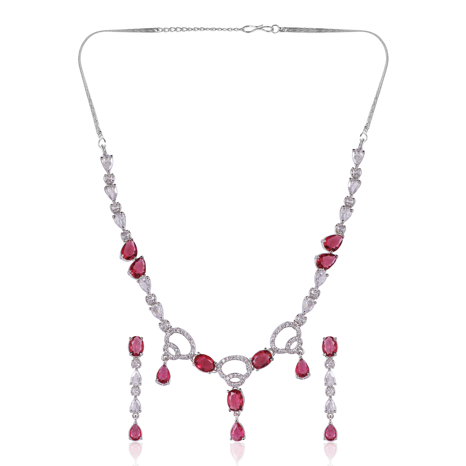 Classic Red Stone AD Necklace Set – Rhodium Plated Jewellery