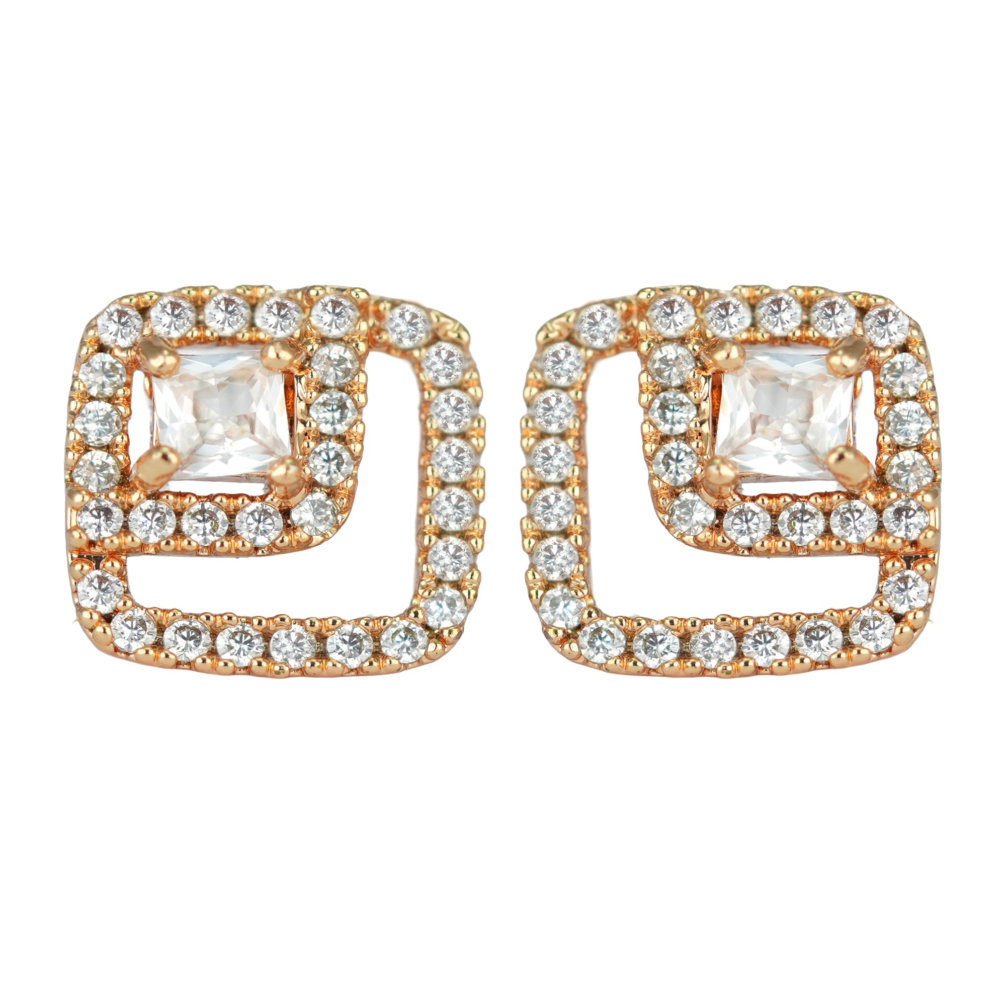 Rose gold-plated stud earrings featuring petite silhouettes, designed for casual outings. Offers easy to style and subtle statement, making it ideal for gifting.