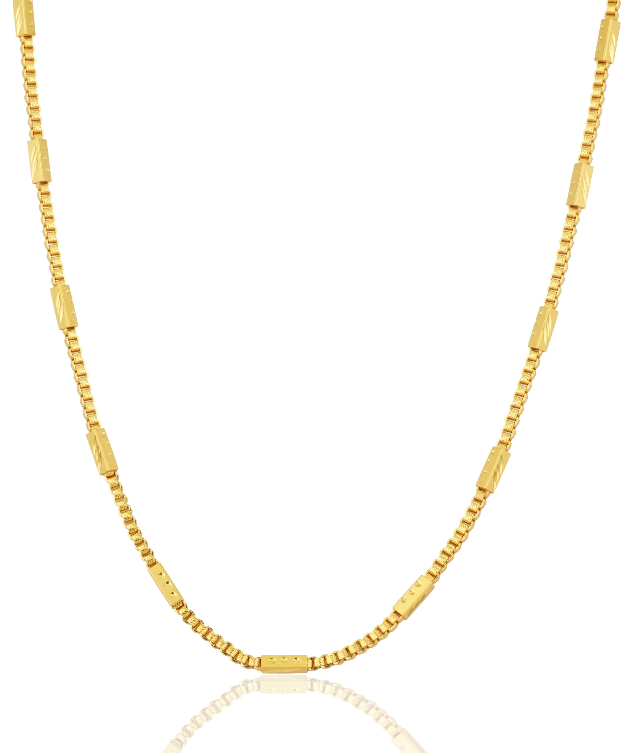 A minimal gold plated chain, lightweight and durable for daily wear. Its timeless design ensures lasting shine with easy styling.