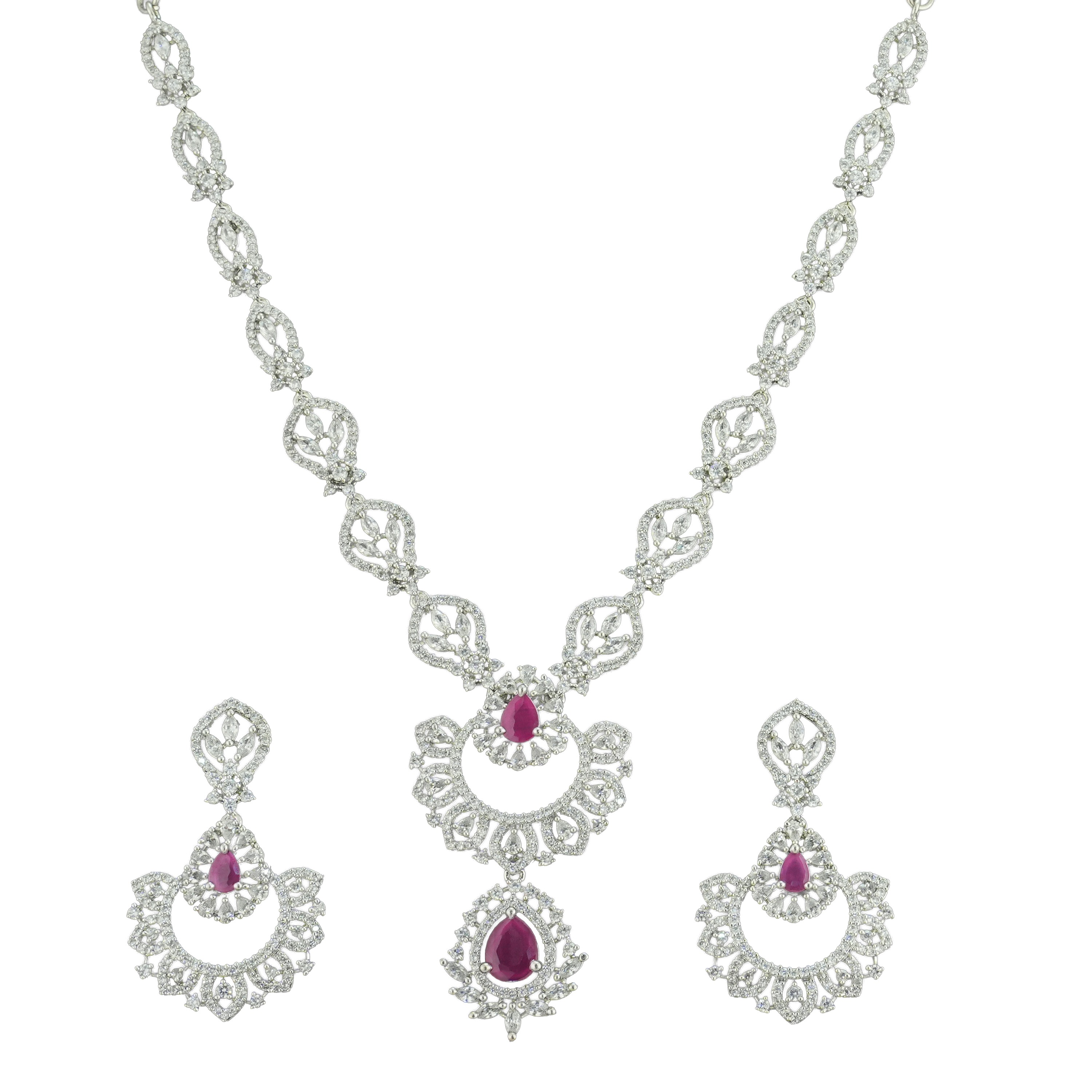 Elegant Ruby Rhodium Plated Necklace – Designer Series