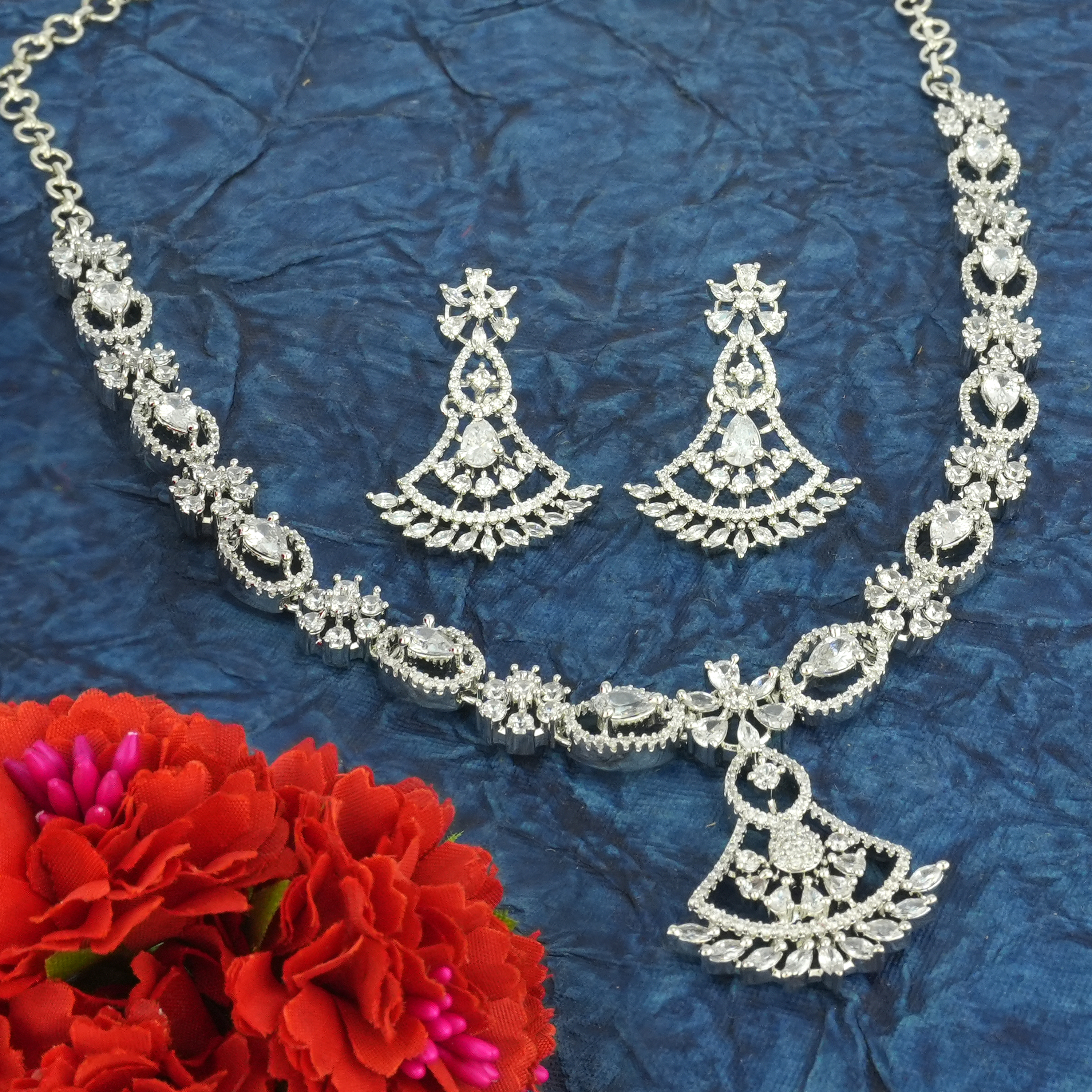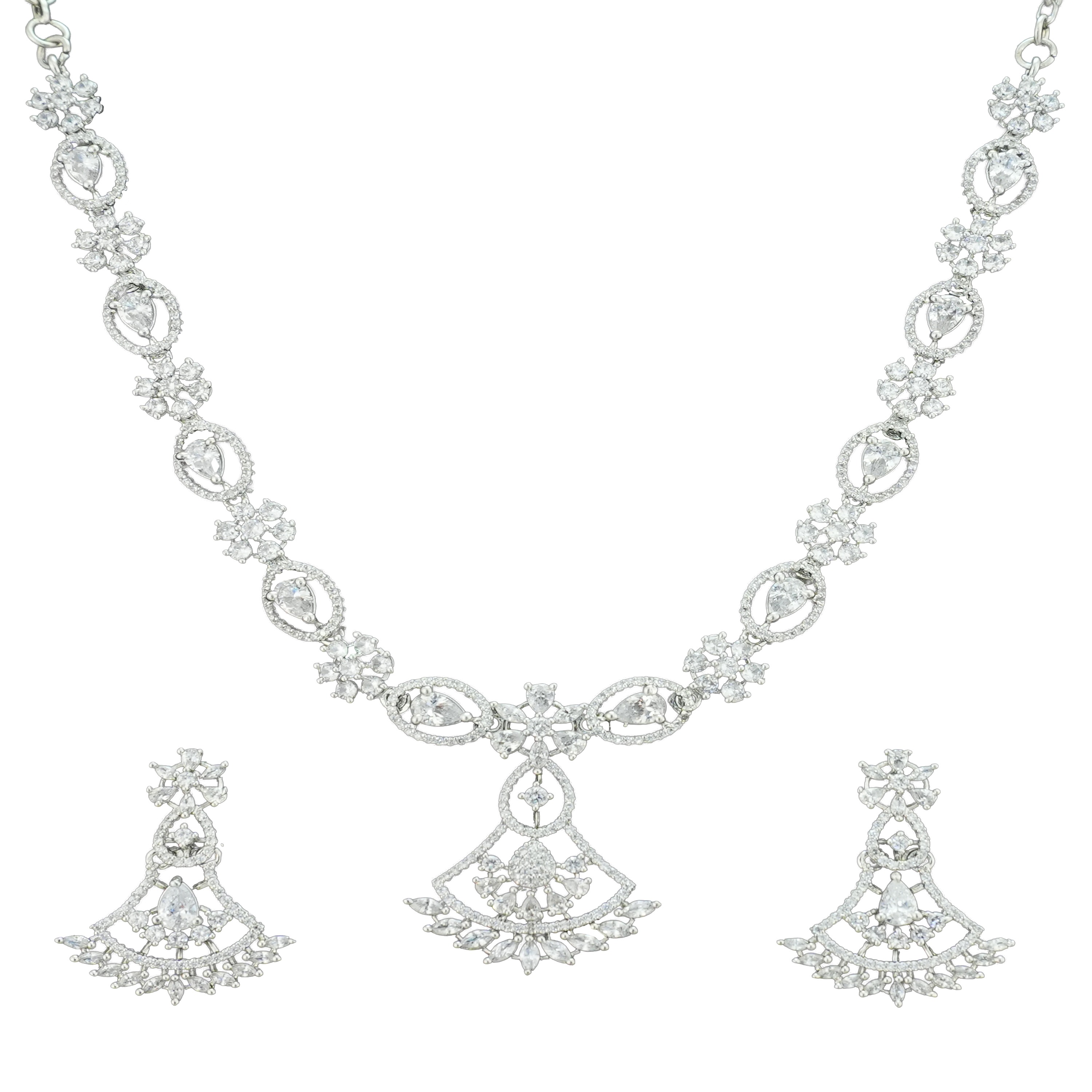 This elegant classic white rhodium plated necklace is crafted for modern charm. A perfect pick for weddings, parties, and festive occasions, designed to elevate your look.