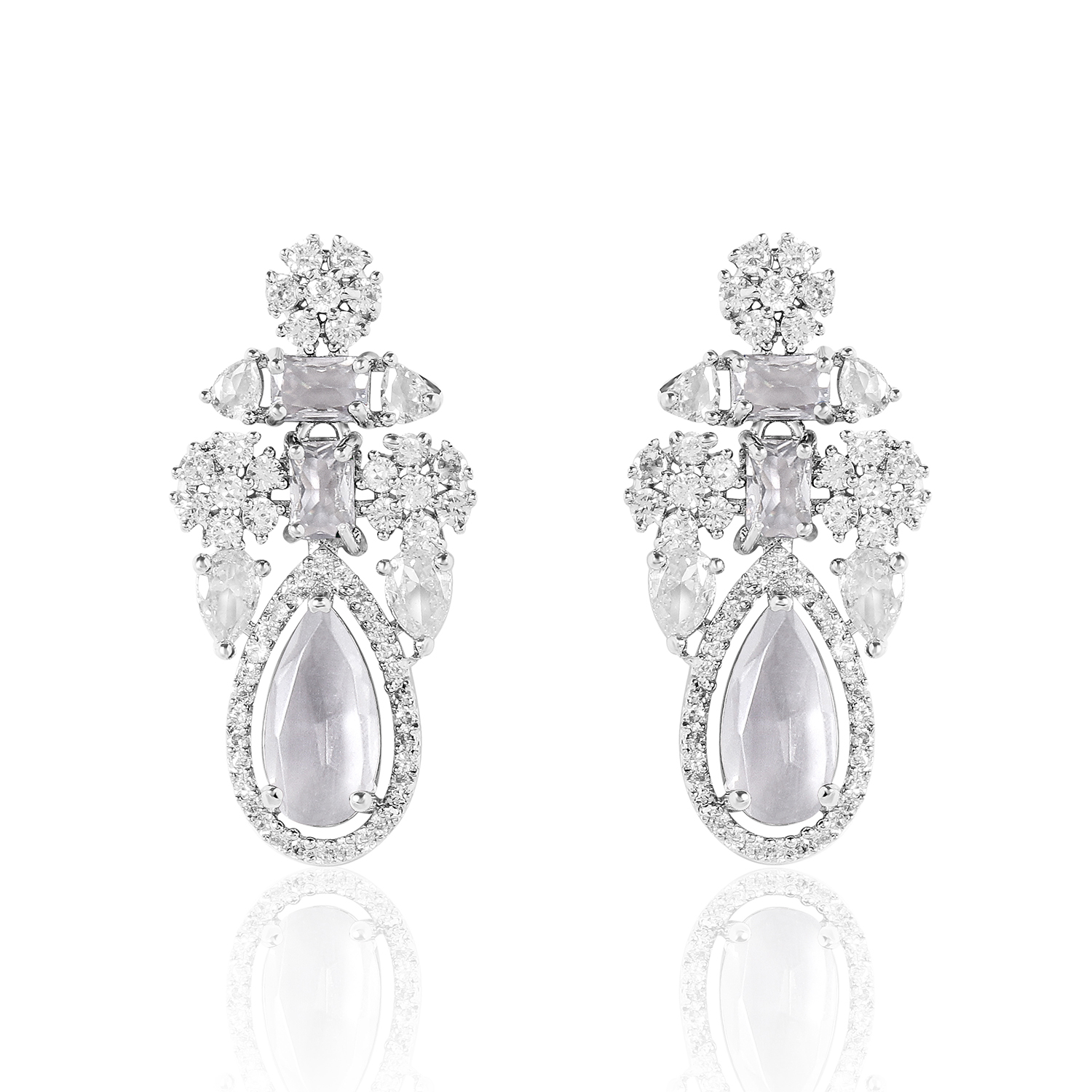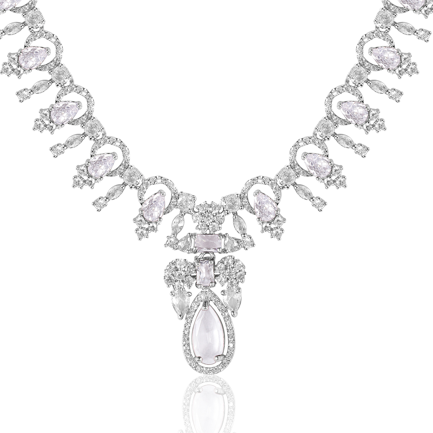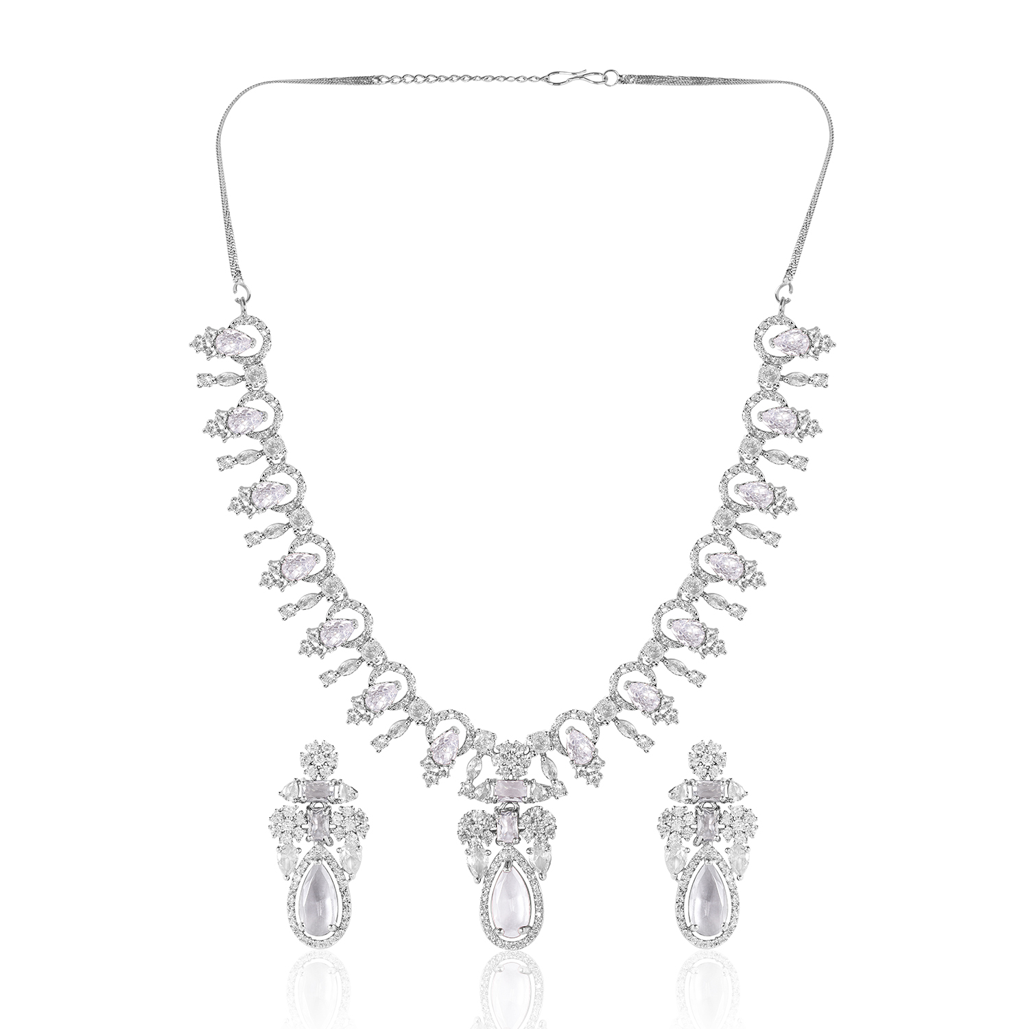 Elegant White Stone AD Necklace Set – Premium Rhodium Finish