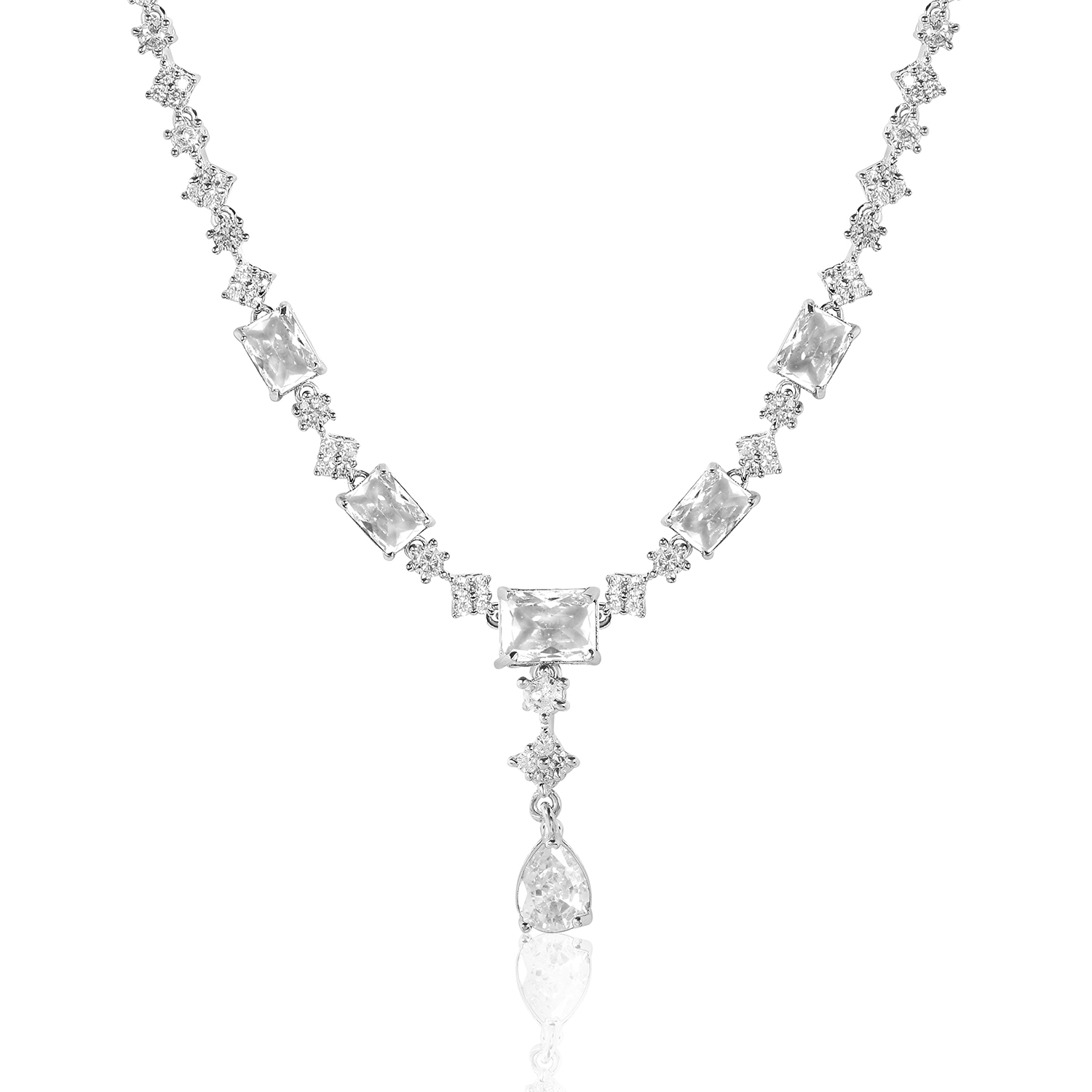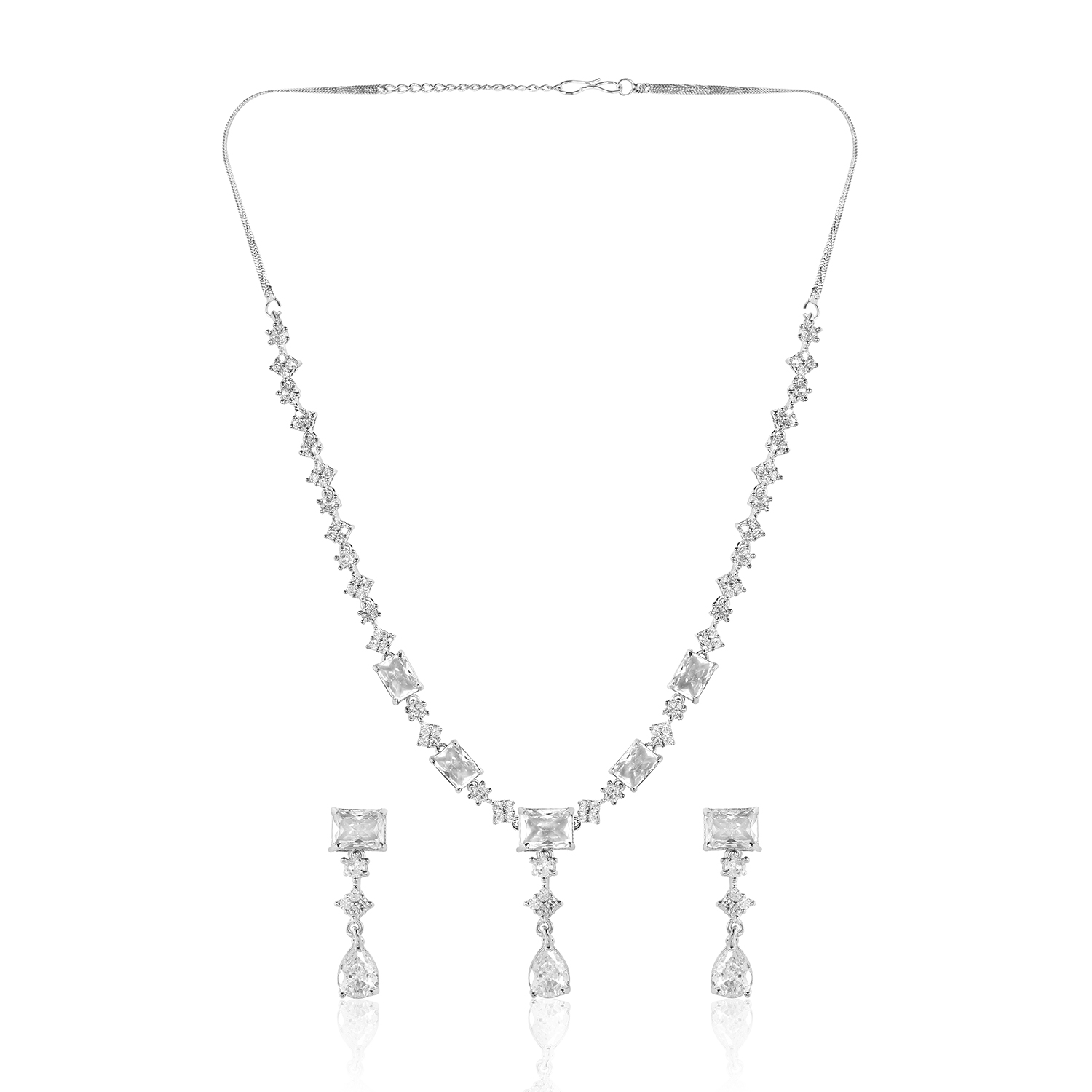 Elegant White Stone AD Necklace Set – Rhodium Finish Elegant White Stone AD Necklace Set – Rhodium Finish