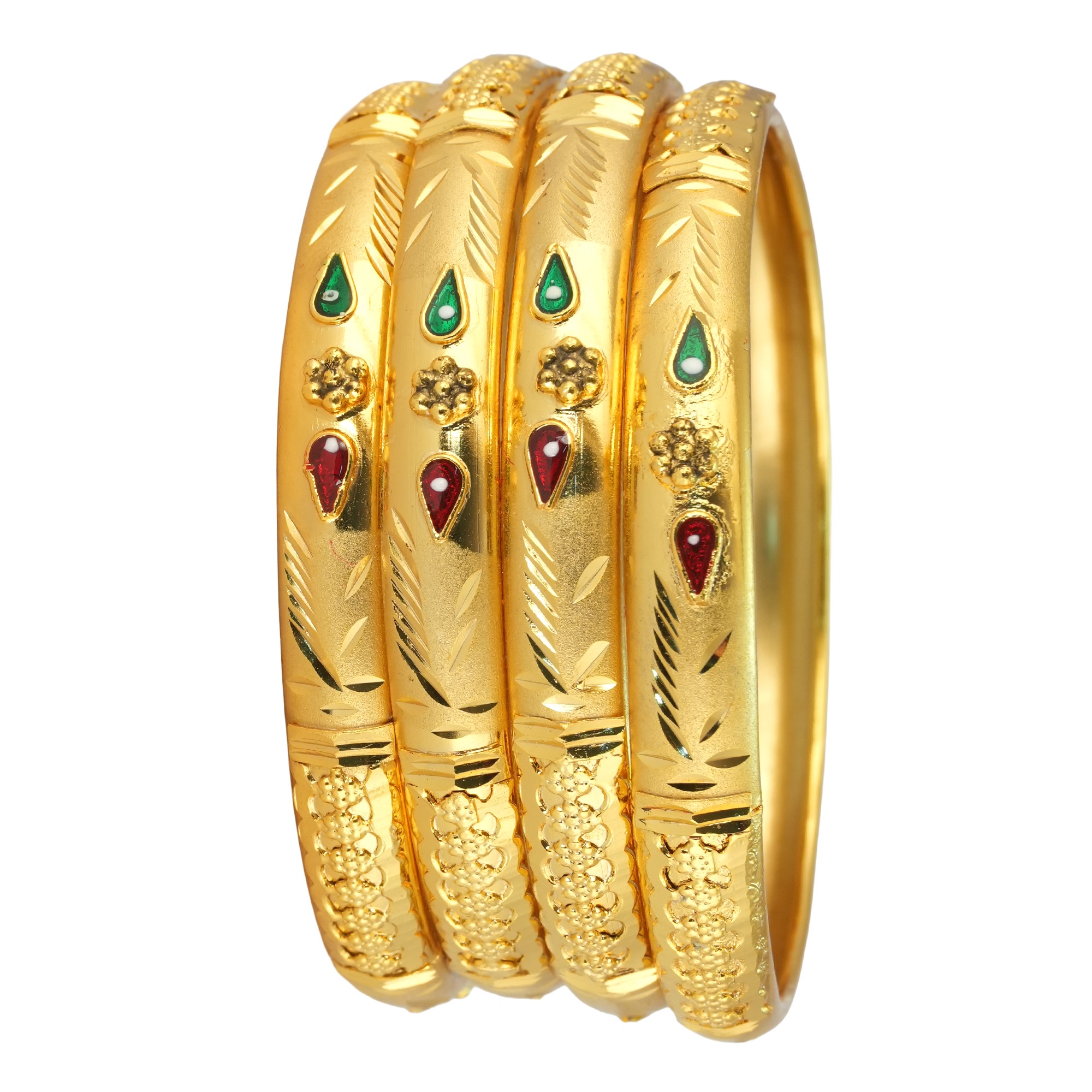 Eternal Charm Gold-Plated Bangles are designed with unique craftsmanship for occasional and festive styling. Featuring polished plating and intricate artistry, they deliver unmatched elegance for weddings and cultural gatherings.