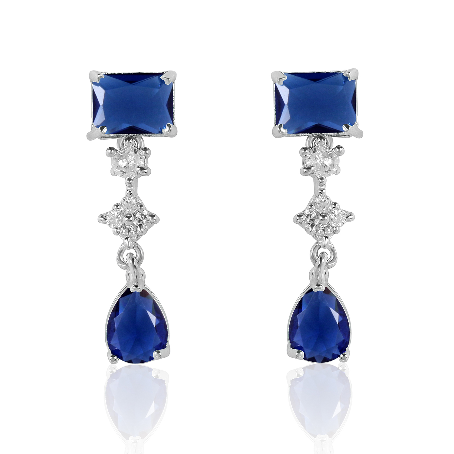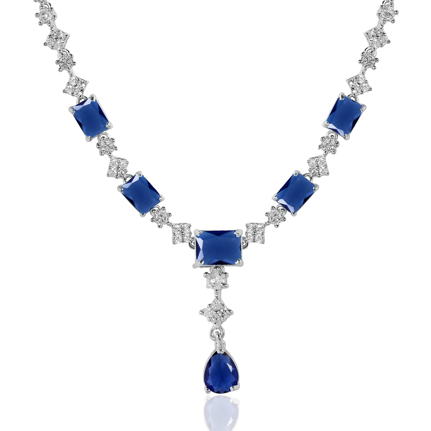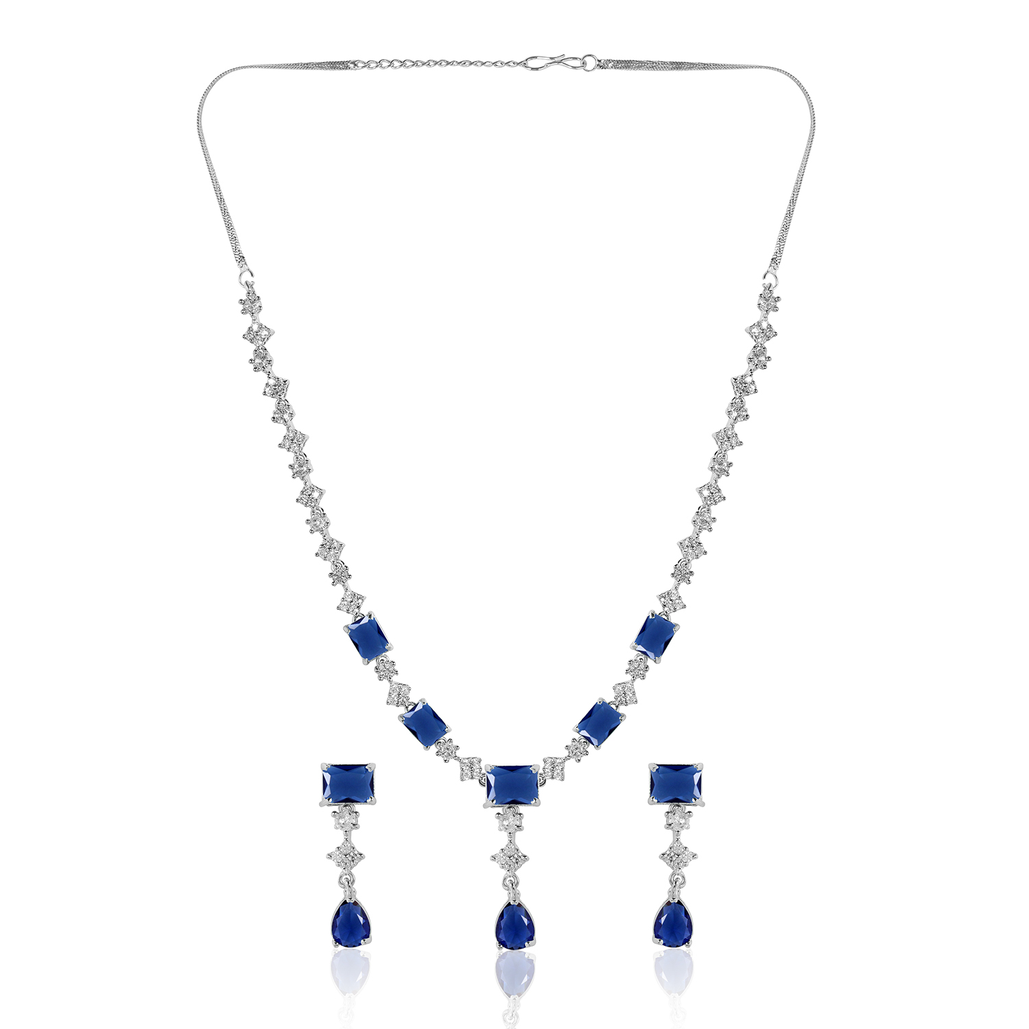 Graceful Blue Stone AD Necklace Set – Rhodium Finish