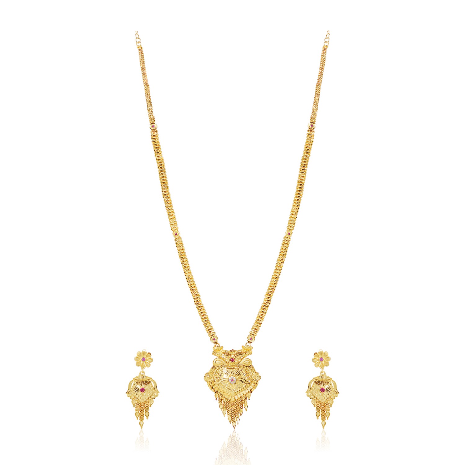 Bridal Gold Necklace Set: Heritage Long Design for Weddings | Jecy Jewels