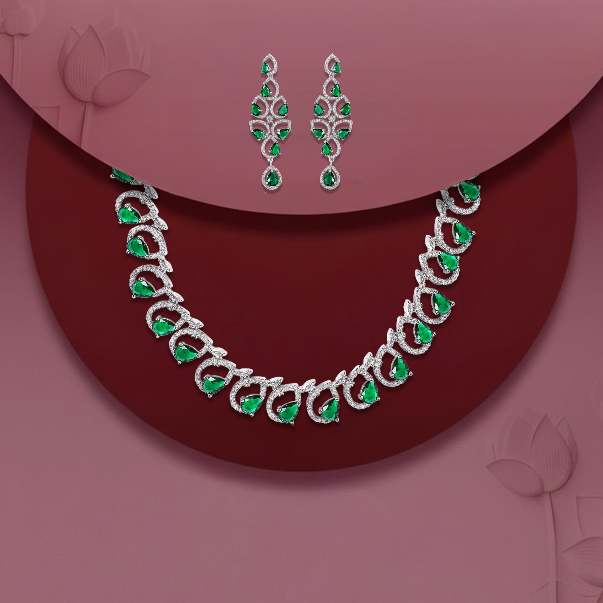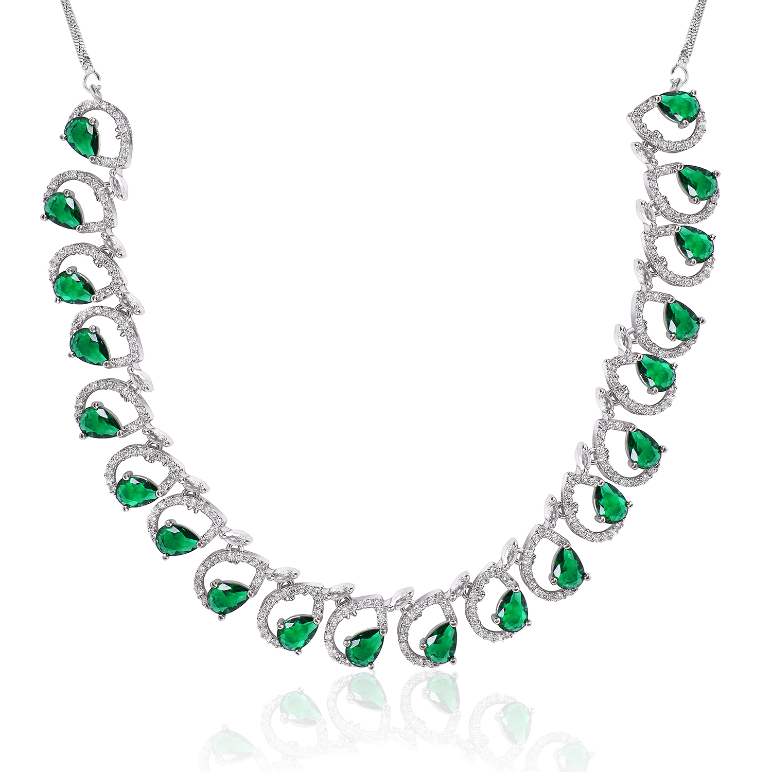 Green Stone AD Necklace Set – Regal Rhodium Plated Bridal Design | Jecy Jewels