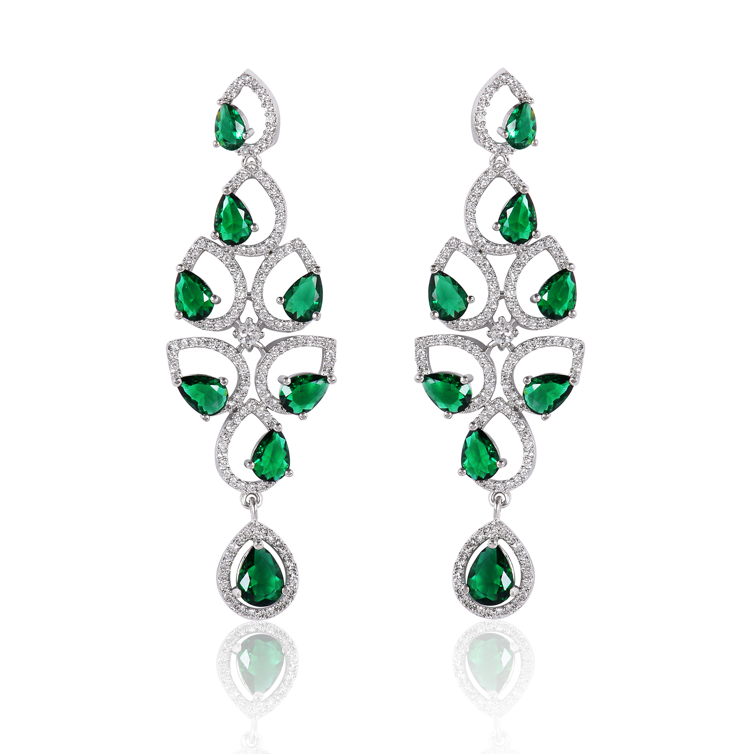 Designed with deep green stones, this rhodium plated AD necklace set brings regal beauty to weddings, receptions, and special occasions.