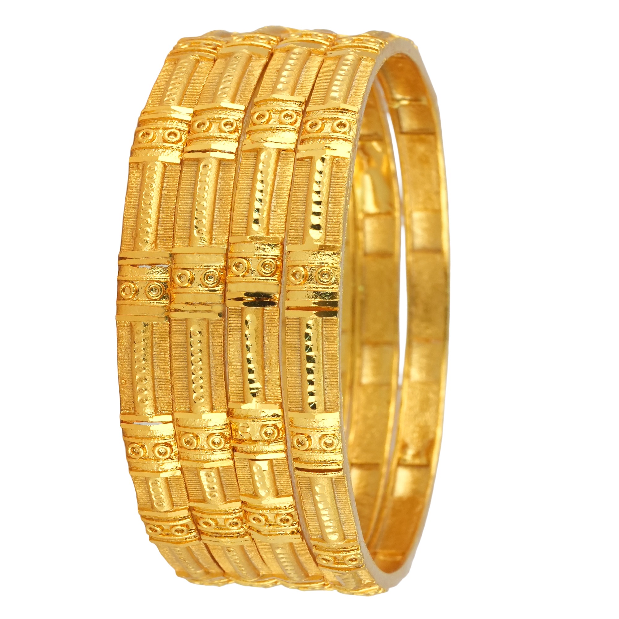 Luminous Touch Bangles – Designer Gold-Plated Pair | Jecy Jewels
