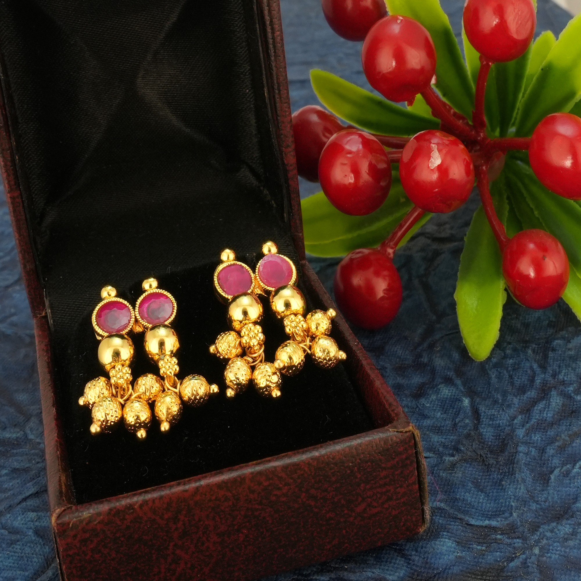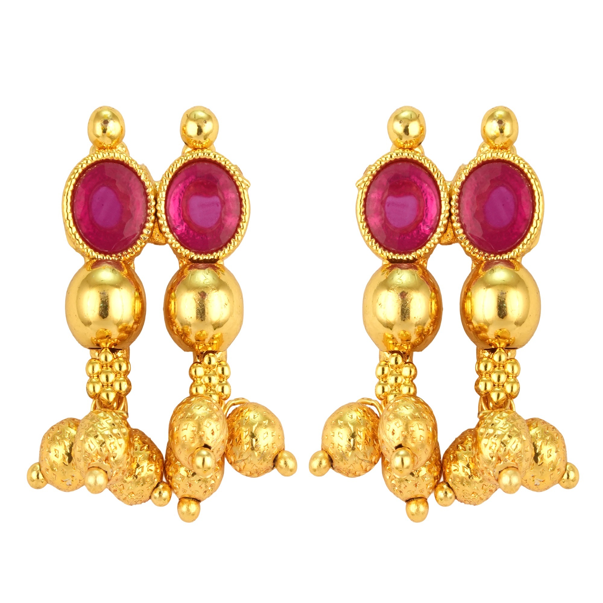 A modern take on traditional elegance, these one gram gold plated earrings are crafted for parties, festivals, and occasional wear.