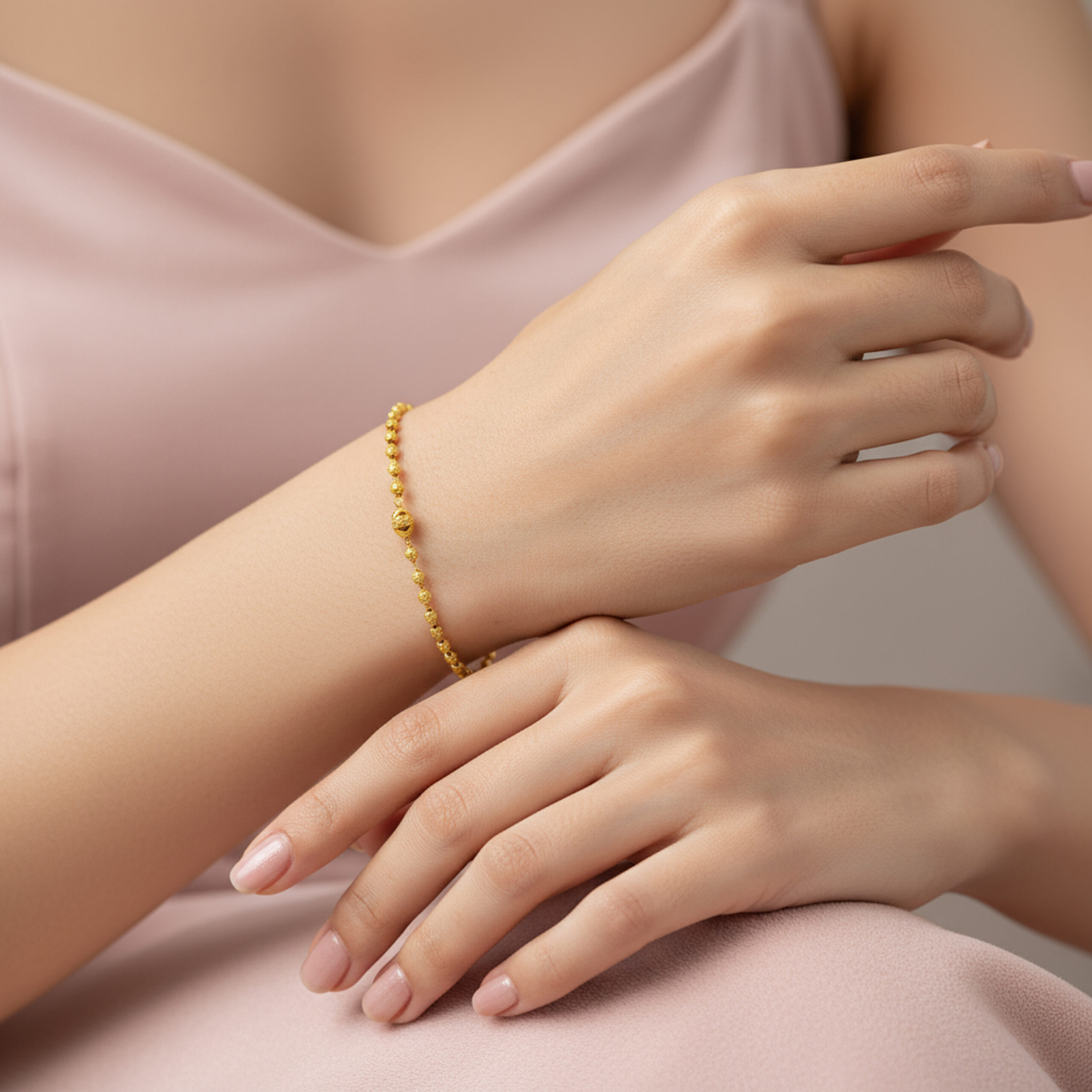 Featuring a sleek gold plated finish, this one gram gold-plated women’s bracelet is ideal for daily wear or occasional styling. It’s a versatile piece that complements ethnic and modern outfits with ease.