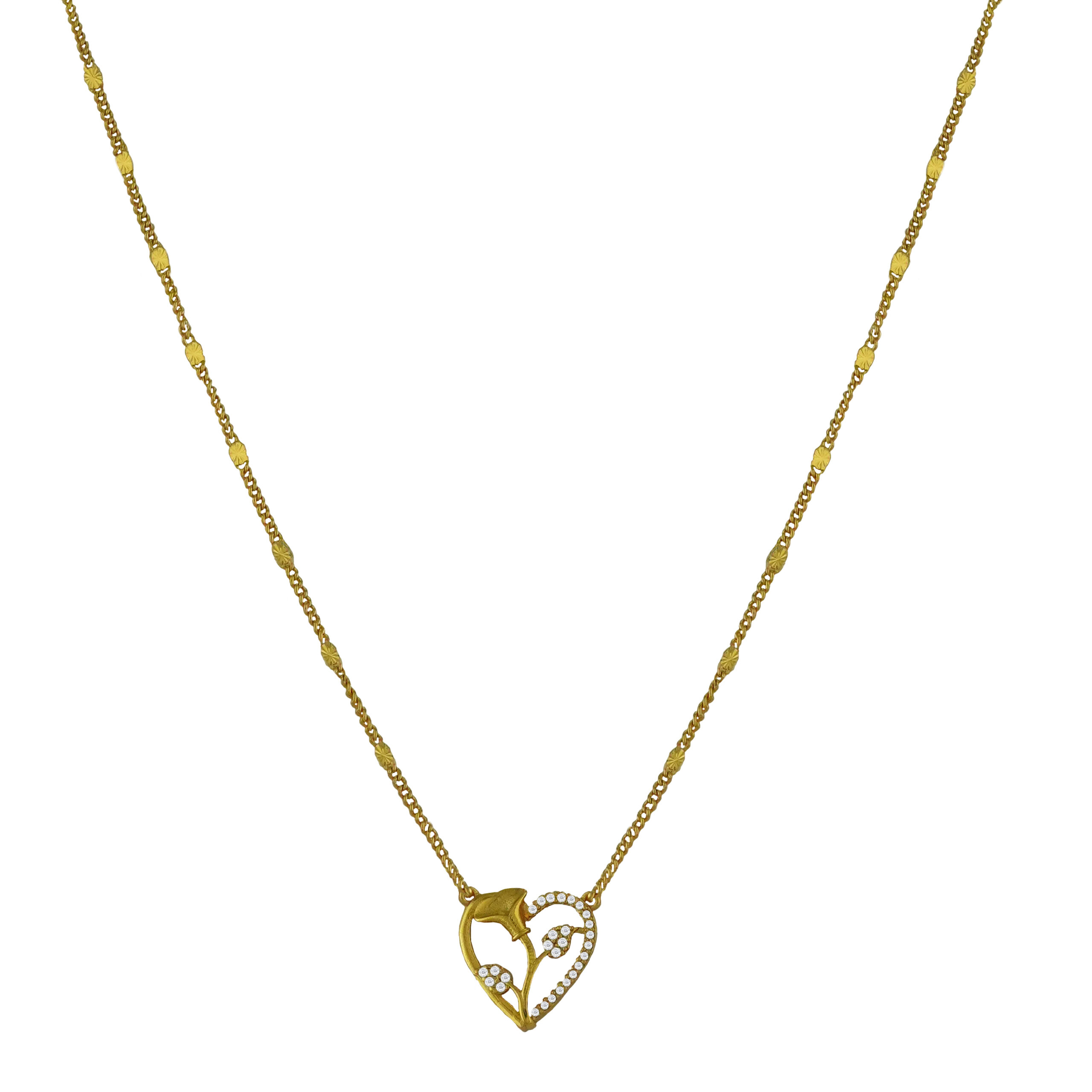 A lightweight one gram gold plated chain with pendant offering shine and simplicity. Designed for everyday pairing with ethnic, contemporary, and minimal outfits.