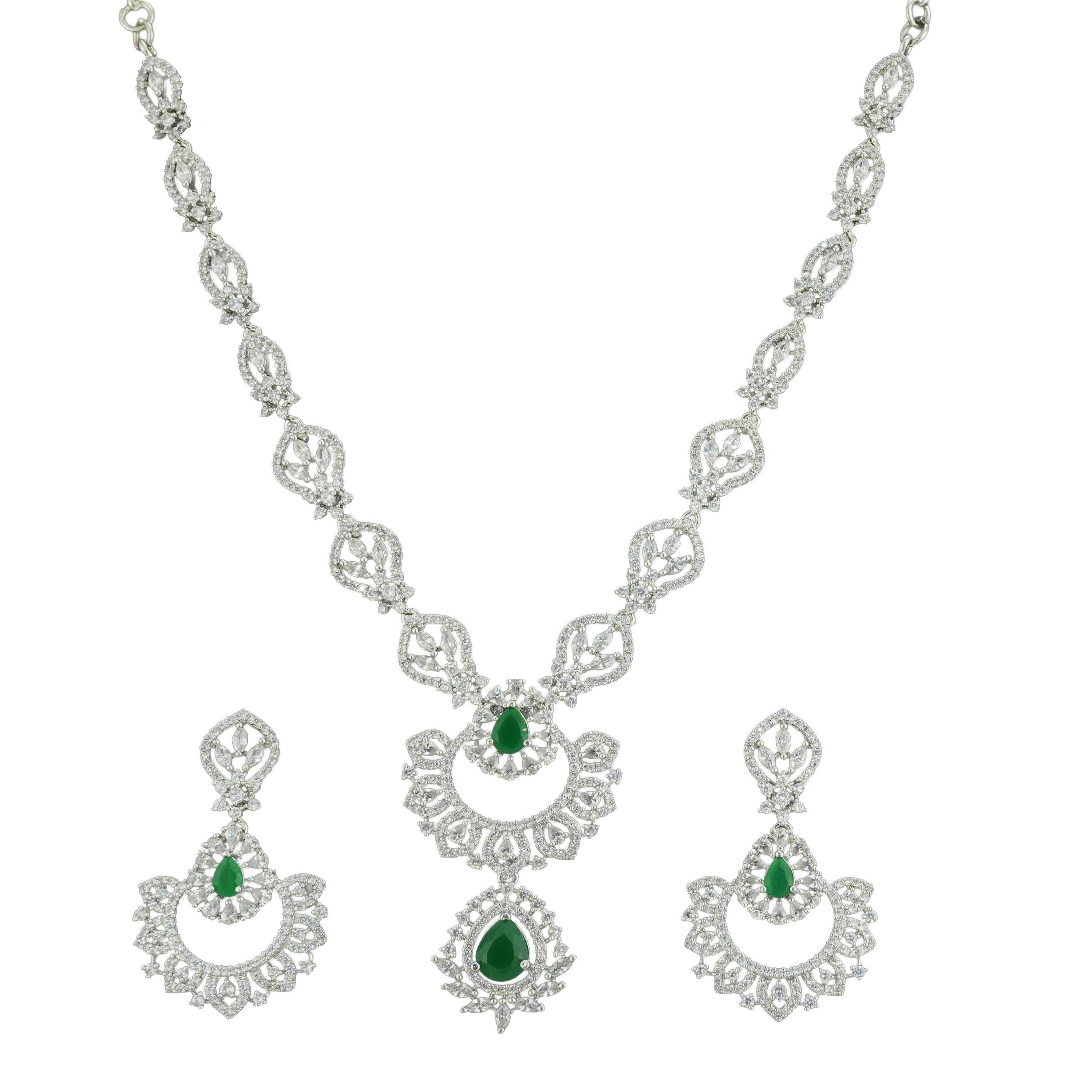 Radiant Green Rhodium Plated Necklace – Designer Series