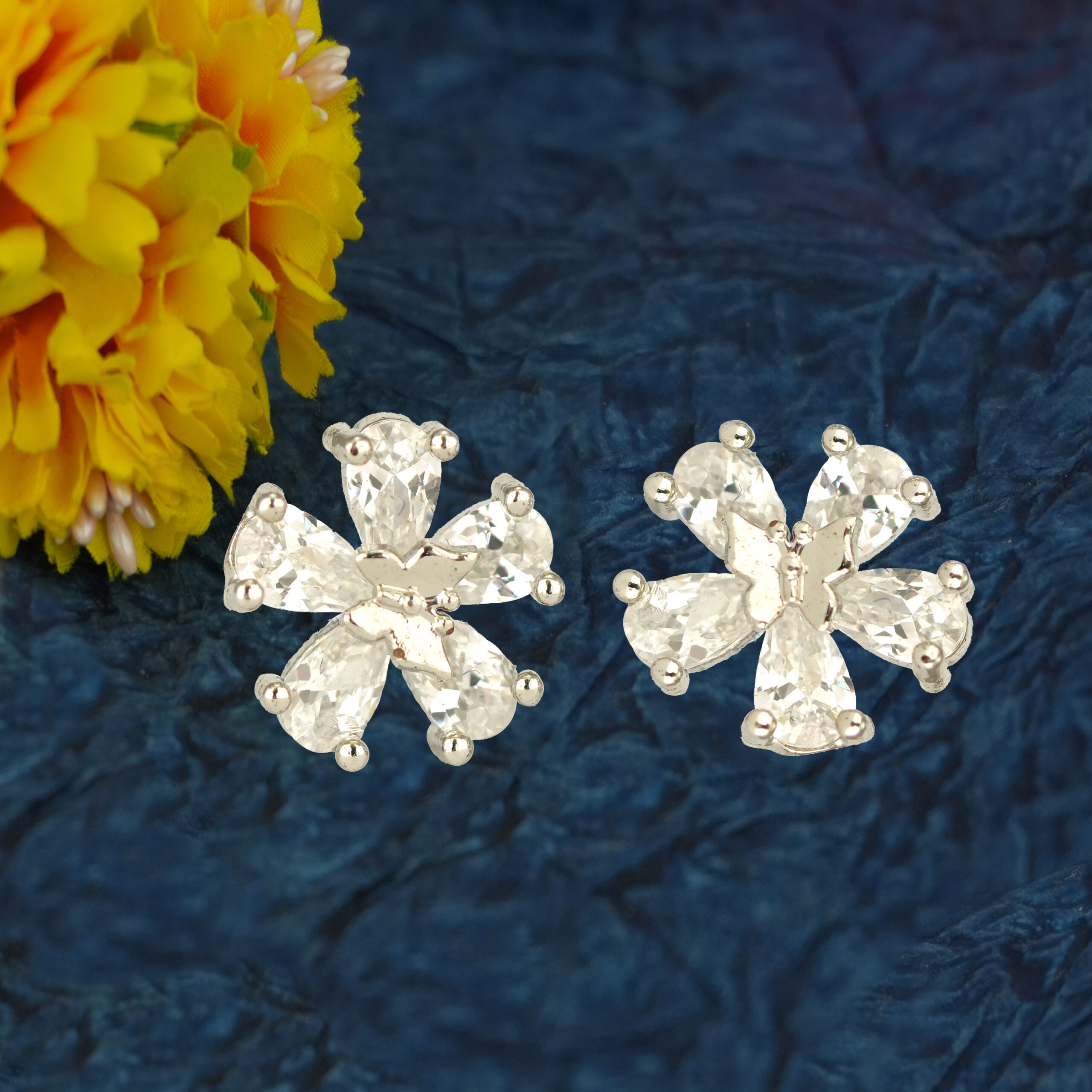 Rhodium-plated stud earrings featuring comfort-lock backs, designed for travel-friendly style. Offers versatile pairing and all-day comfort, making it ideal for minimal wardrobes.