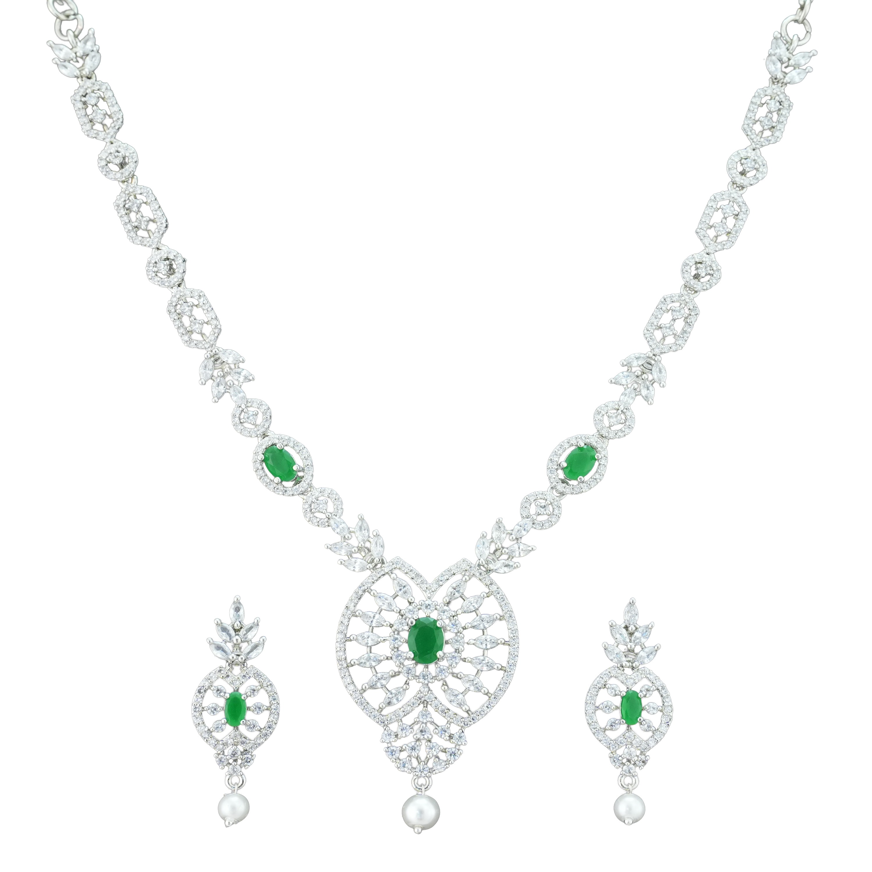 Royal Green Rhodium Plated Necklace – Classic Edit