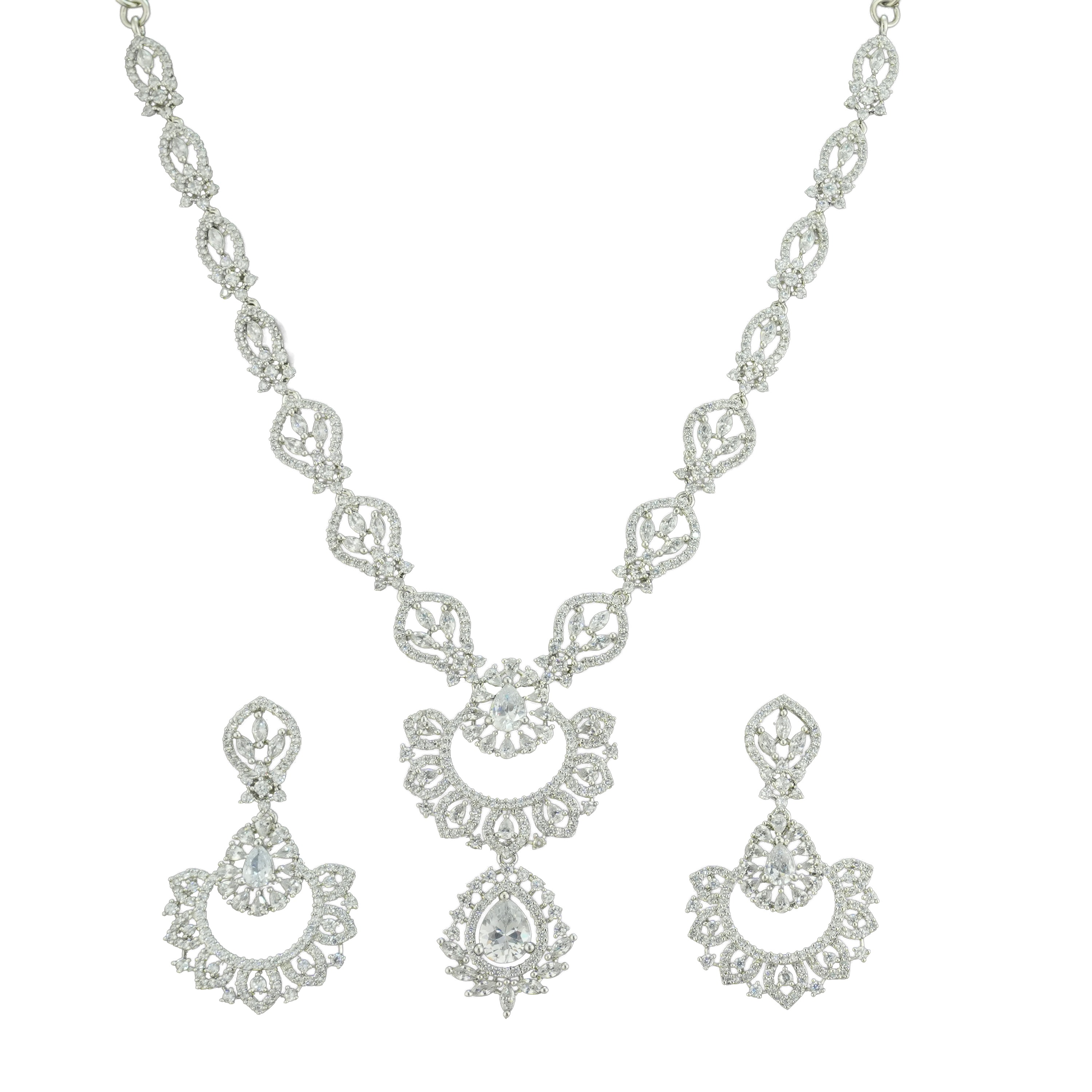 This stylish classic white rhodium plated necklace is crafted for designer series. A perfect pick for weddings, parties, and festive occasions, designed to elevate your look.