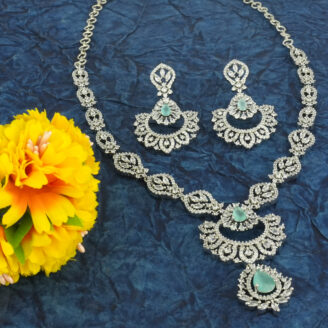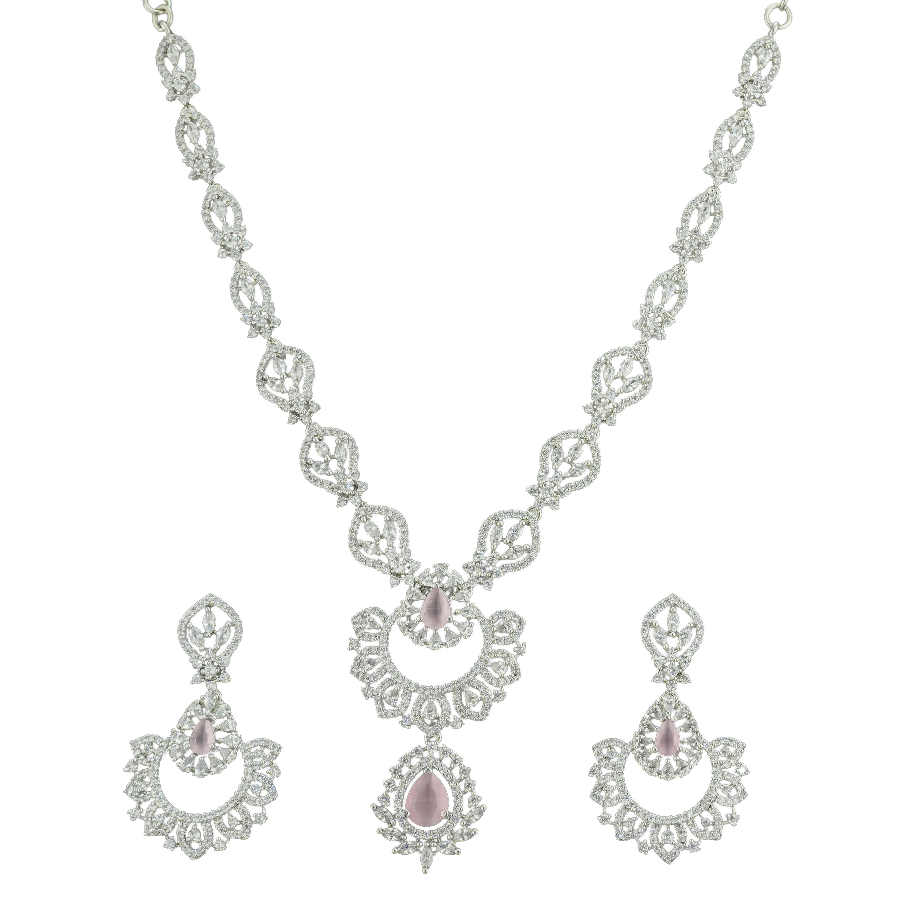 This timeless fresh mint pink rhodium plated necklace is crafted for designer series. A perfect pick for weddings, parties, and festive occasions, designed to elevate your look.