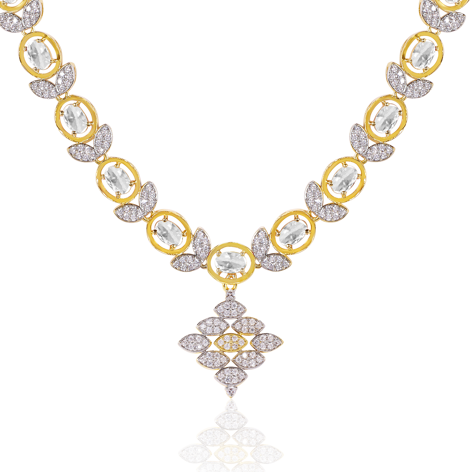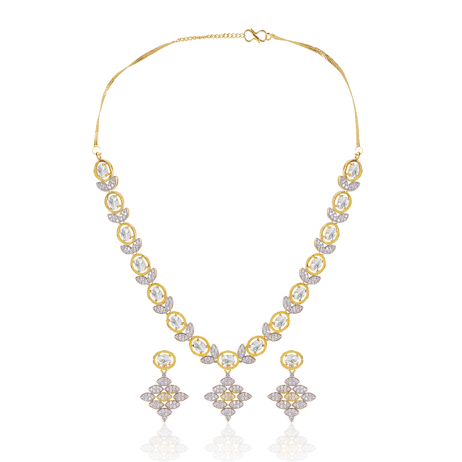 White Stone AD Necklace Set – Classic Gold Plated Party Wear