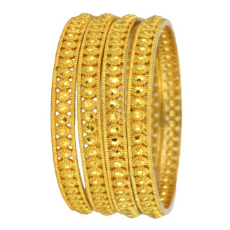 Lustrous Glow Gold-Plated Bangles are designed with unique craftsmanship for occasional and festive styling. Featuring polished plating and intricate artistry, they deliver unmatched elegance for weddings and cultural gatherings.