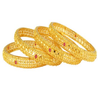 Tranquil Beauty Gold-Plated Bangles are designed with unique craftsmanship for occasional and festive styling. Featuring polished plating and intricate artistry, they deliver unmatched elegance for weddings and cultural gatherings.