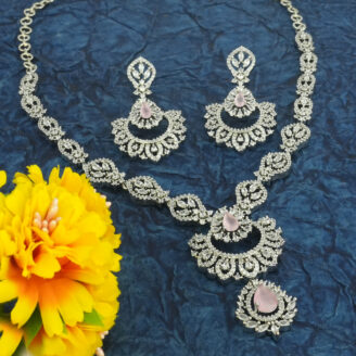 This timeless fresh mint pink rhodium plated necklace is crafted for designer series. A perfect pick for weddings, parties, and festive occasions, designed to elevate your look.