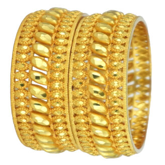 These timeless glow gold-plated bangles are crafted with intricate detailing that blends tradition and modern charm. Perfect for occasions, they bring a radiant finishing touch to your attire.