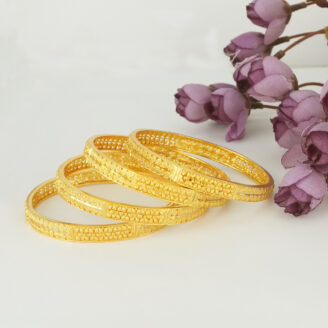 Designed for the modern bride with a love for tradition, these timeless gold bangles offer unmatched elegance. Their intricate patterns and micro gold plating make them a standout accessory for festive and wedding events.